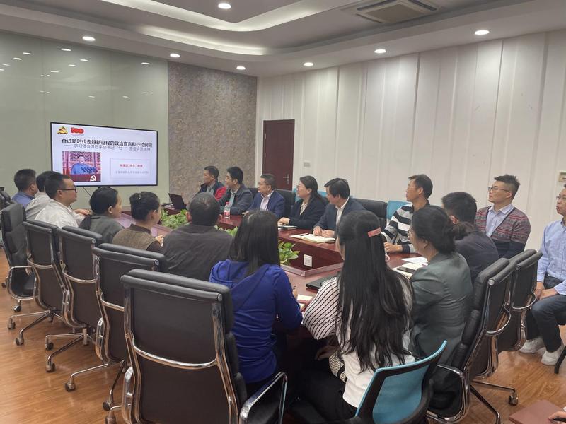 陈荣武从“全面把握‘七一’重要讲话的重大意义”“深刻领会‘七一’重要讲话的主要精神”“增强贯彻落实的政治、思想和行动自觉”三个方面展开论述。他认为“七一”重要讲话,贯通历史、现实、未来,贯通伟大斗争、伟大工程、伟大事业、伟大梦想,高屋建瓴、思想深邃、内涵丰富,把我们党对共产党执政规律、社会主义建设规律、人类社会发展规律的认识提升到了新高度,为奋进新时代、走好新征程进一步指明了前进方向、提供了根本遵循。在“两个一百年”奋斗目标历史交汇点这一新征程上,我们要认清当前的历史方位,强化使命感和紧迫感,增强政治判断力、政治领悟力和政治执行力,做到胸怀“两个大局”,始终牢记“两个务必”,始终牢记“初心使命”。