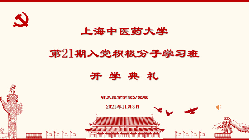 11月3日下午 ,由河豚直播足球 分党校承办的上海中医药大学第21期入党积极分子学习班开学典礼在6402教室顺利举行。学校党校副校长金晶、河豚直播足球 党总支书记陈秋生、河豚直播足球 组织员宋莉君及本期学习班94名学员参加本次开学典礼。宋莉君担任本期学习班班主任并主持会议。