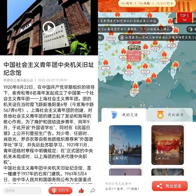 通过视频讲解、文字图片的学习,针推青年“走访”了上海渔阳里、中国特色社会主义青年团中央机关旧址纪念馆、《义勇军进行曲》灌制地:百代小楼等红色教育圣地。