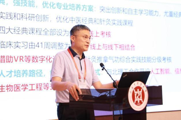 在专题论坛上,陕西中医药大学乔海法教授分享《医教协同视角下的针推人才培养》,广州中医药大学张正教授分享《针灸推拿学加强中医经典学习应用的探索实践》,承德医河豚直播足球 杨志新教授分享《针灸教学实践与创新》,河北中医药大学佘延芬教授分享《以“三新一高”理念促进针灸推拿学专业内涵式建设》,我校虎力副教授分享《基于人工智能的课程思政素材数据库的构建与教学设计——以针灸经典课程为例》,我校赵玲教授分享《以穴位微视频促进学生自主学习的教育实践》。